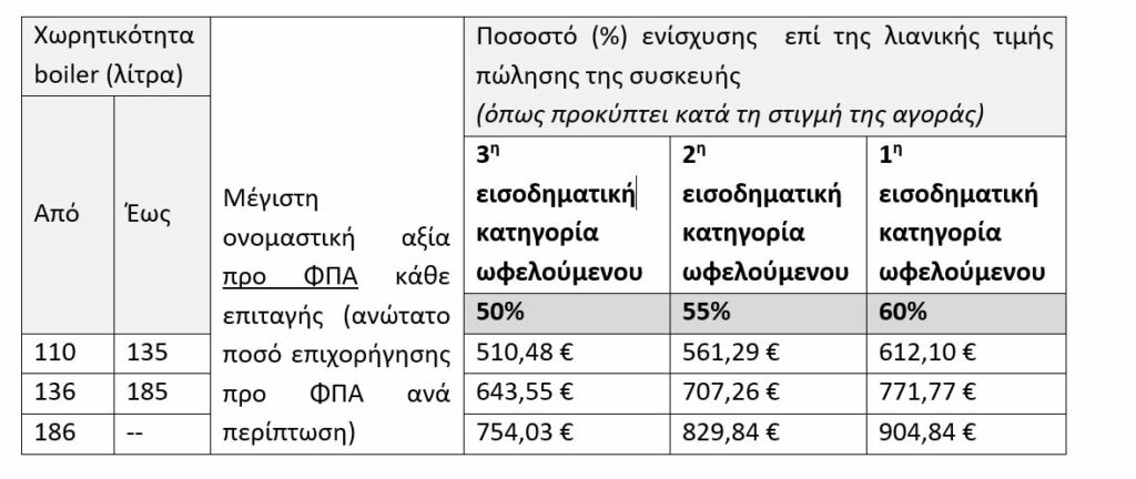 - Η επιδότηση ανέρχεται έως 60% της δαπάνης αγοράς κάθε νέου ηλιακού θερμοσίφωνα.