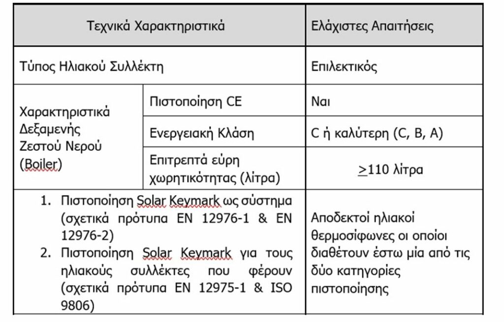 Επιλέξιμοι ηλιακοί θερμοσίφωνες προς αγορά