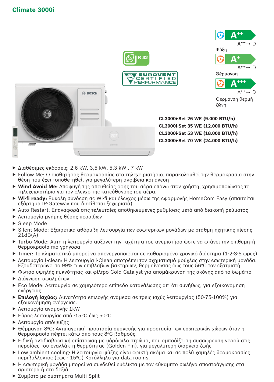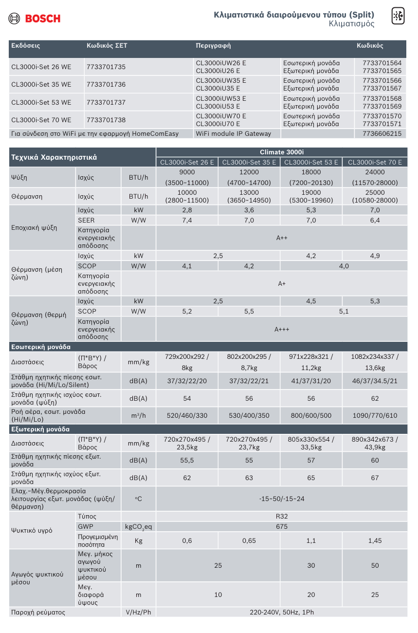 *Για τα μοντέλα Bosch Climate 3000i, Climate 5000i και Climate 6000i απαιτείται πρόσθετο εξάρτημα (Bosch Gateway) για τη σύνδεση σε wi-fi μέσω της εφαρμογής, το οποίο διατίθεται ξεχωριστά*